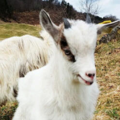 mellom Seim og Lygra. Garden har vore drifta av familien i 6 generasjonar og vi overtok i 2020. Det er viktig for oss å halde garden og landskapet i hevd. Difor har vi starta opp med den bevaringsverdige geiterasen vestlandsk kystgeit. Dei er supre beiteryddarar og held landskapet ope. Kystgeita likar best å vere ute heile året og er kun inne ei lita periode i kjeinga. Frå den første starten med 4 geit er det no 25 kystgeit som bidrar til eit vakkert kulturlandskap.